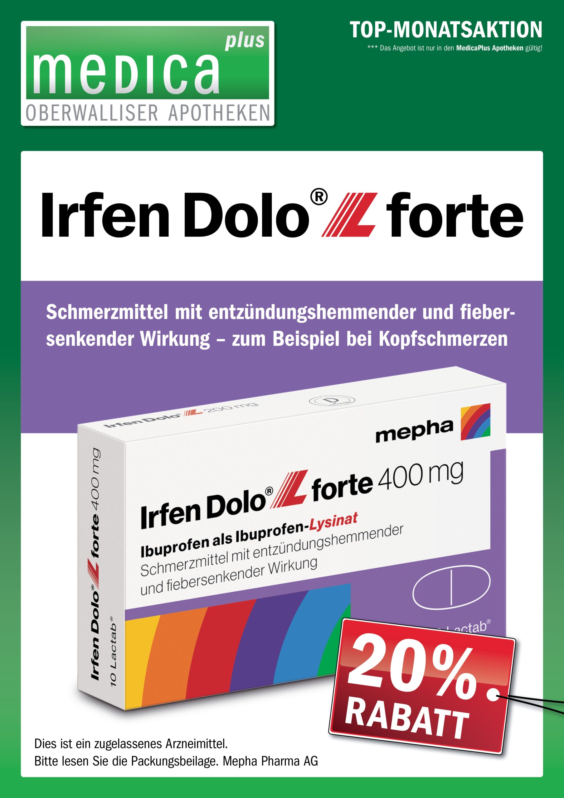 Wir präsentieren die Monatsaktion vom August 2021. Jetzt von 20% Rabatt profitieren. Gültig in allen MedicaPlus Apotheken.
