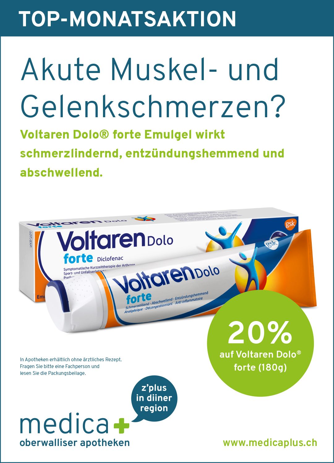 Unsere Monatsaktion im September: Profitieren Sie jetzt von 20% Rabatt auf das Voltaren Dolo forte Emulgel. Gültig in allen MedicaPlus Apotheken.