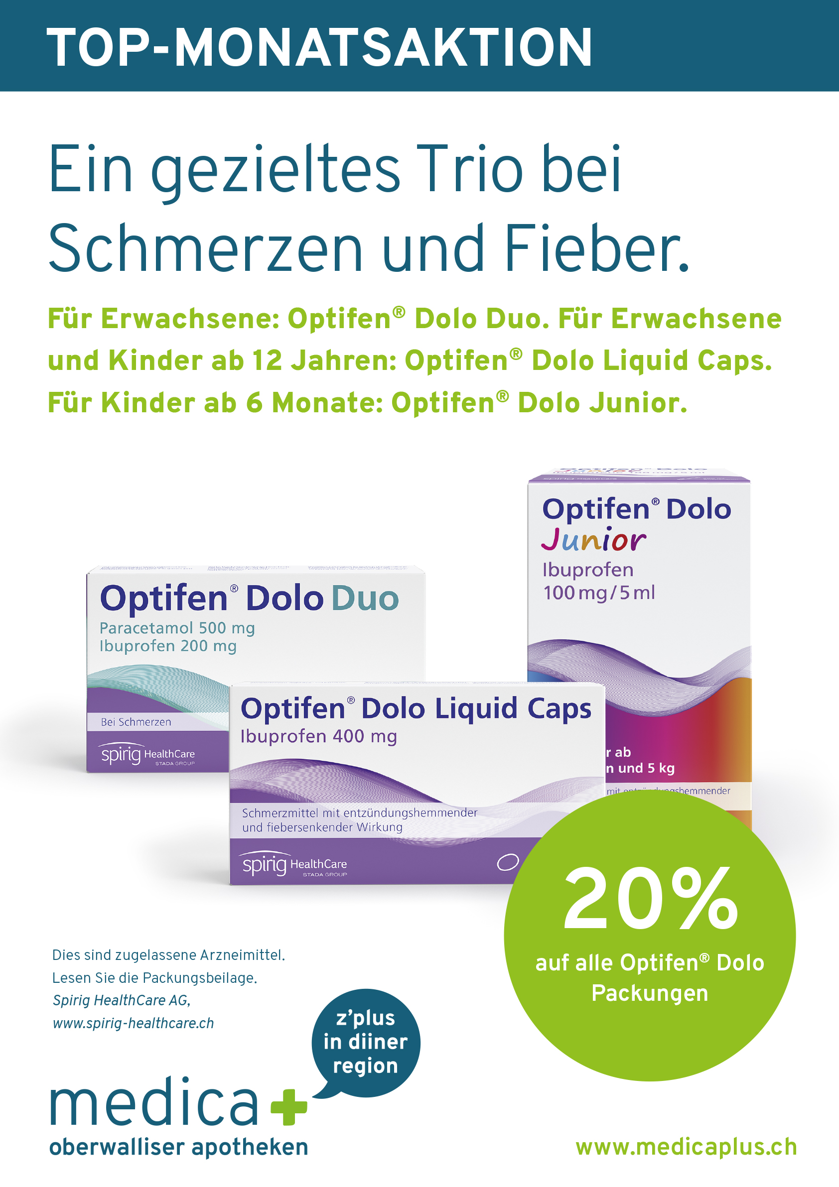 Unsere Monatsaktion im Februar 2024. Jetzt von 20% Rabatt auf die Optifen Dolo Produkte profitieren. Gültig in allen MedicaPlus Apotheken.
